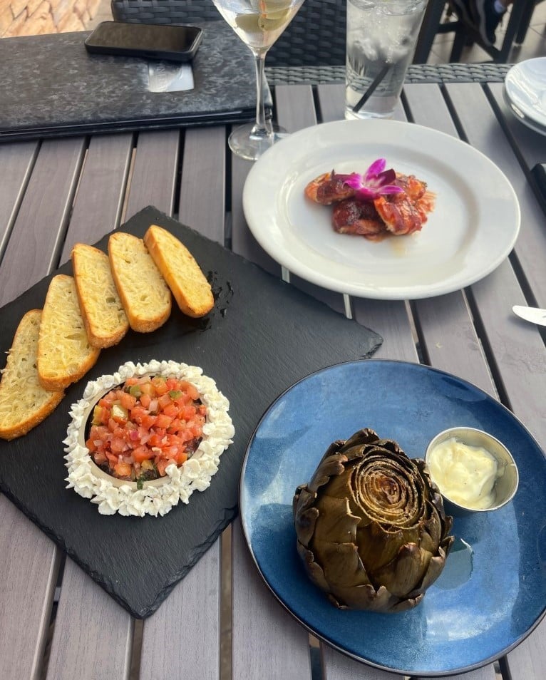 After our long drive from Los Angeles we went downstairs to the Martini Bay Bar and Grill to relax and have a drink and dinner. We got our drinks from the bar and then asked to be seated outside on the patio.