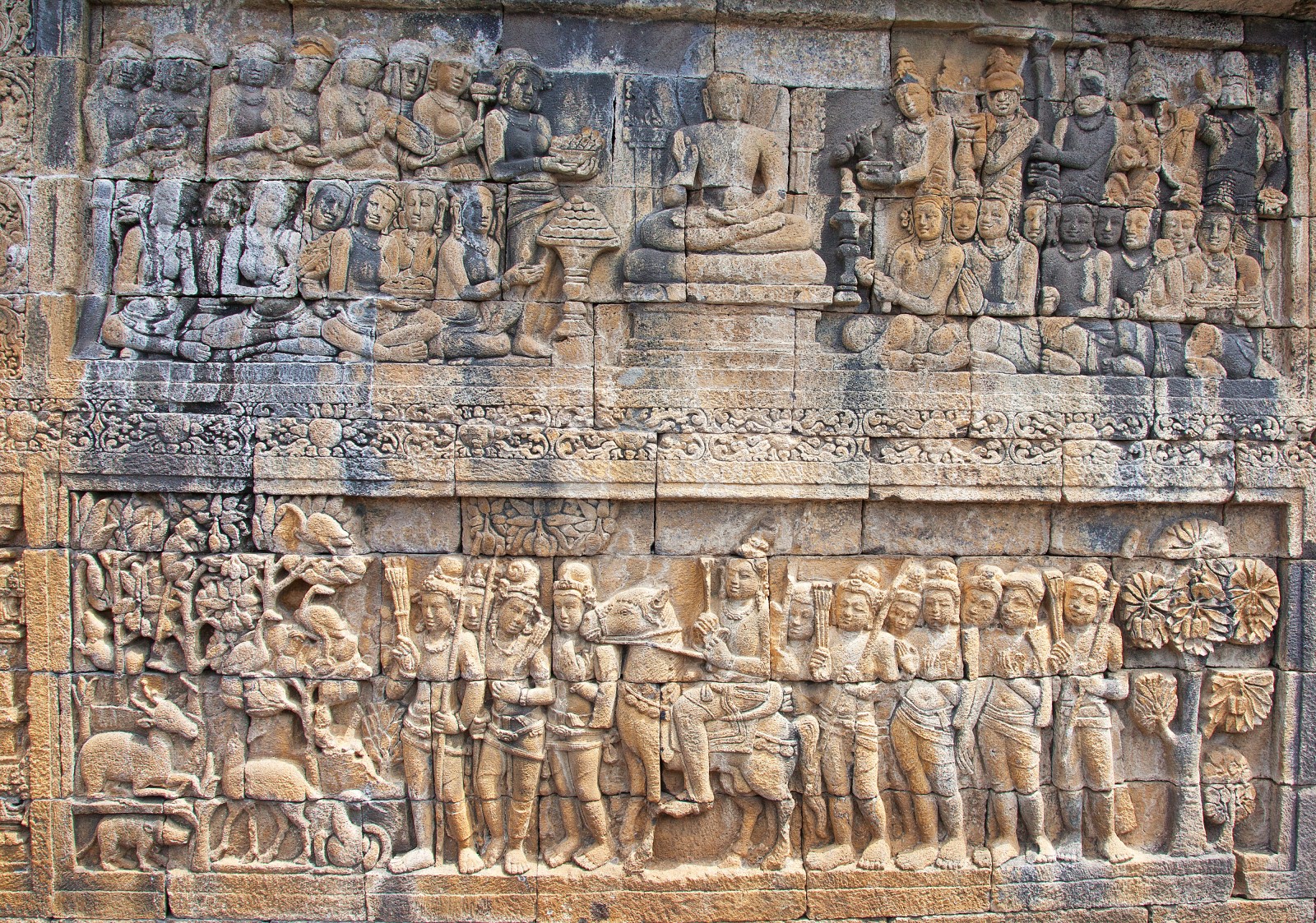 Each level of Borobudur symbolizes the stages of Buddhist enlightenment. The base represents the world of desire; the middle levels, the world of forms; and the top levels, the world of formlessness. The temple walls are adorned with over 2,600 relief panels, which are considered to be one of the most complete ensemble of Buddhist reliefs in the world. These panels tell various Buddhist stories, including the Jataka tales that narrate the previous lives of the Buddha. There are over 500 Buddha statues within Borobudur, each positioned in a meditative pose. Many of these statues are enclosed in stupa, bell-shaped structures, which are an iconic aspect of the temple’s architecture.