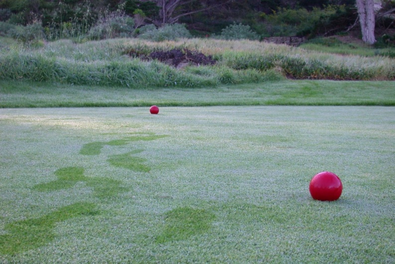 The morning shadows and light make for some interesting perspectives when drawing near the greens. One needs to walk several feet around the ball to get a good feel of the angles. This course is famous for its perilously steep sand-traps. If you do not pitch out away from these deep traps, you will cascade into another and learn the true meaning of being trapped.
