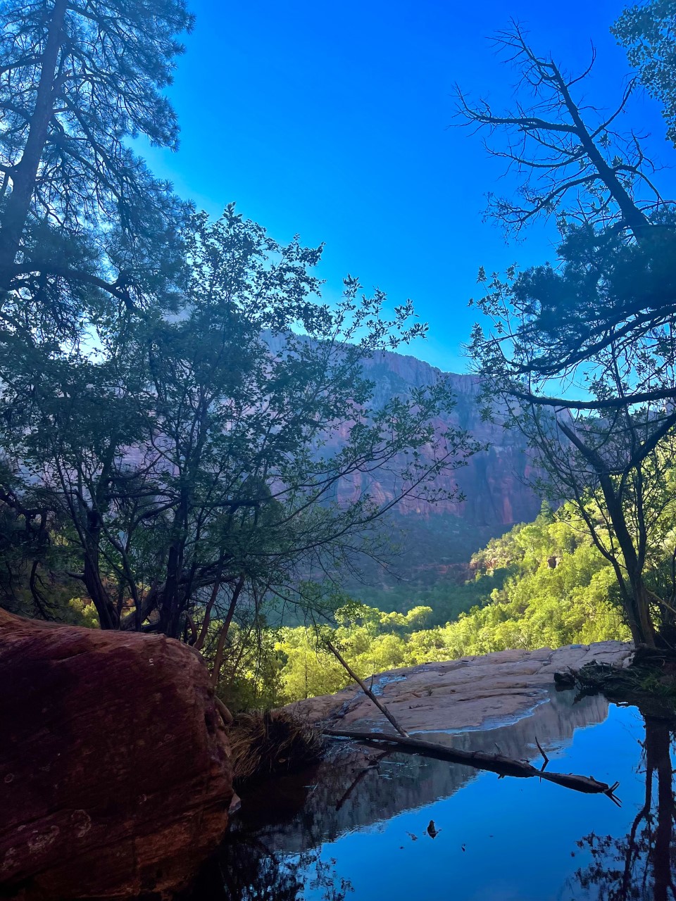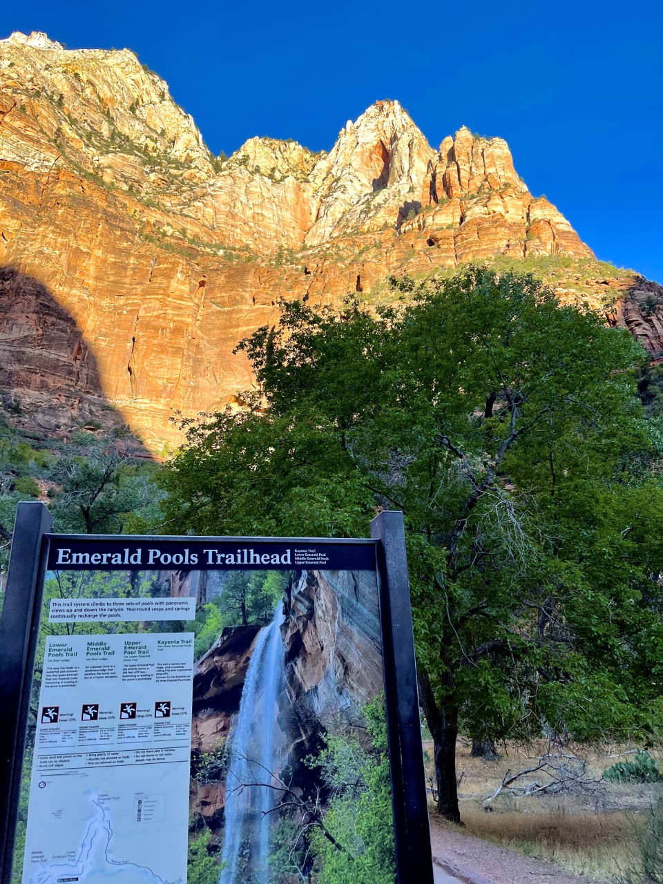 There are so many hikes to choose from at Zion. We got there super early to avoid the heat and large crowds. We ended up doing an easier hike to the Emerald Pools.