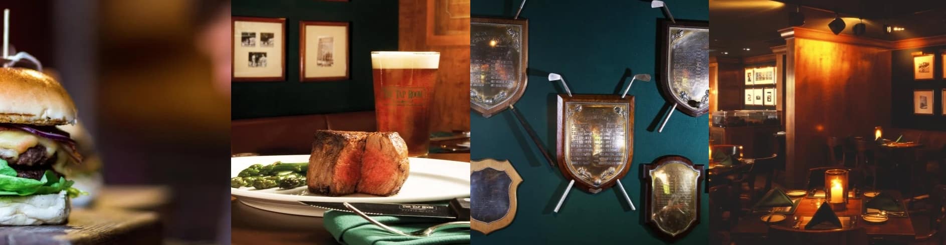 The Tap Room or Trophy Room is located in The Lodge and is a wonderful watering hole with a great selection of draft and bottled beers, vintage wines, select scotch whisky, bourbons and other top quality spirits. It’s also a world-class steakhouse serving up hearty All-American fare, from Kobe burgers to Prime Rib to the 22oz bone-in center cut Prime Delmonico. The Tap Room selects only the finest, hand-selected Prime and certified Angus beef, grilled to perfection in a high-intensity Montague broiler. There is also a piano in the room where qualified patrons can sit down and play a tune or two.