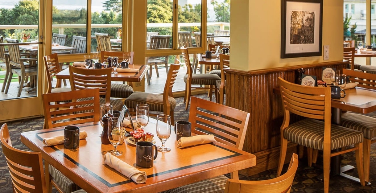 What makes the 1st tee at Pebble Beach the most intimidating to a golfer is the audience that overlooks it. The Gallery is a grand spot for early breakfast or lunch. Meal choices ranging from protein filled smoothies to Huevos Rancheros, to Chorizo Biscuits and Gravy as well as the best cup of coffee around. For a casual lunch, try Gallery Cafe’s excellent make-your-own-burgers and ample specialty sandwiches paired with one of their outstanding desserts (the House-made Cinnamon Sticky Roll is recommended). There is also the experience of watching golfers start the course and there are times in which a good drive emotes a bit of applause from the restaurant balcony. That is what makes the view from the Gallery Café so special and should be experienced.