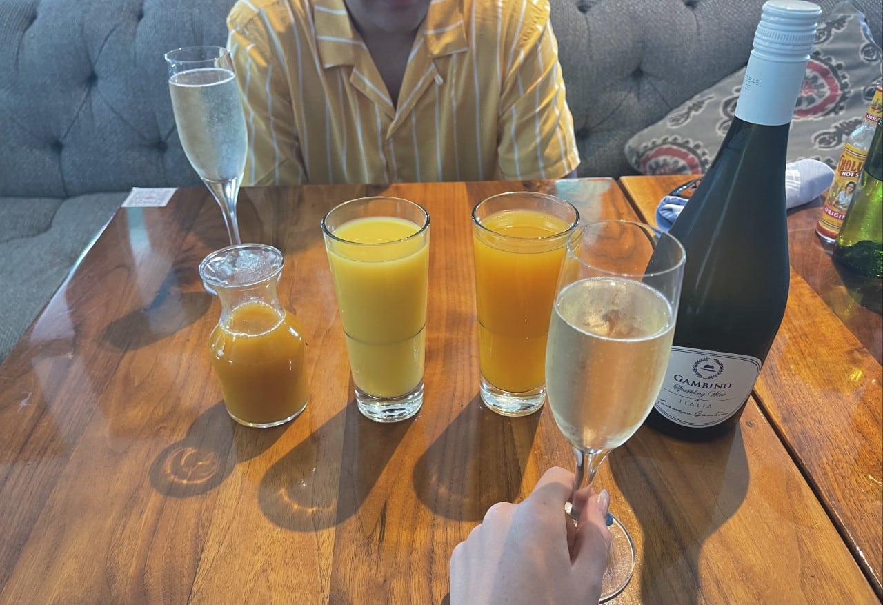 They have different juices you can pour into your champagne if you’re not feeling the classic orange. Peach, Mango, and Guava. Personally, guava was my favorite. Maybe I’m bias because I love pink?