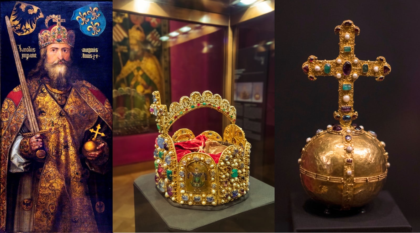 Regarded as an emblem of imperial authority, the Holy Lance was celebrated for its noble status among The Imperial Regalia, with its supposed miraculous powers credited for military triumphs. Its importance as a Passion relic was further acknowledged by its placement in the crossbeam of the Imperial Cross since the early 11th century. Emperor Charles IV (reigning from 1346-1378), a devout admirer of the lance, added a gold cuff bearing the inscription “Lance and Nail of the Lord”. He also successfully lobbied the Pope to inaugurate a feast day honoring the lance and nail.
