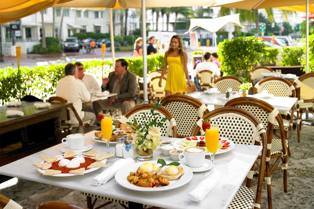 Located at the Cadillac Hotel, the Bungalow is a gorgeous outdoor restaurant by the pool. There are chairs and tables in the sand and lots of palm trees to compliment your lunch. Get a drink served in a coconut, or try one of their many ice cold popsicles. Check out more of The Bungalow here!