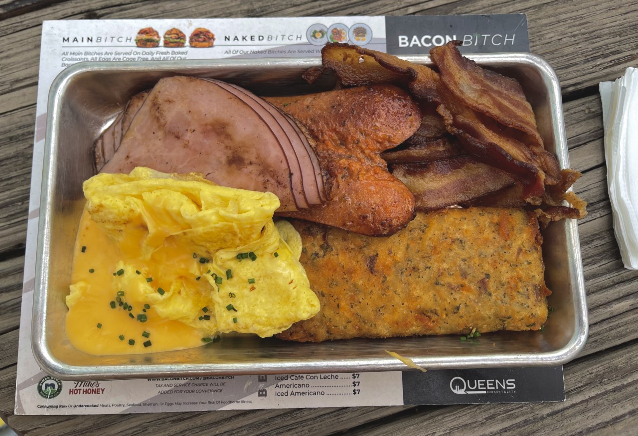 For me, the line went really fast, and we were sat within the next 30 minutes, and unfortunately, they don’t allow outside food or drink. So Bye Bye coffee! Check out more of Bacon Bitch here!