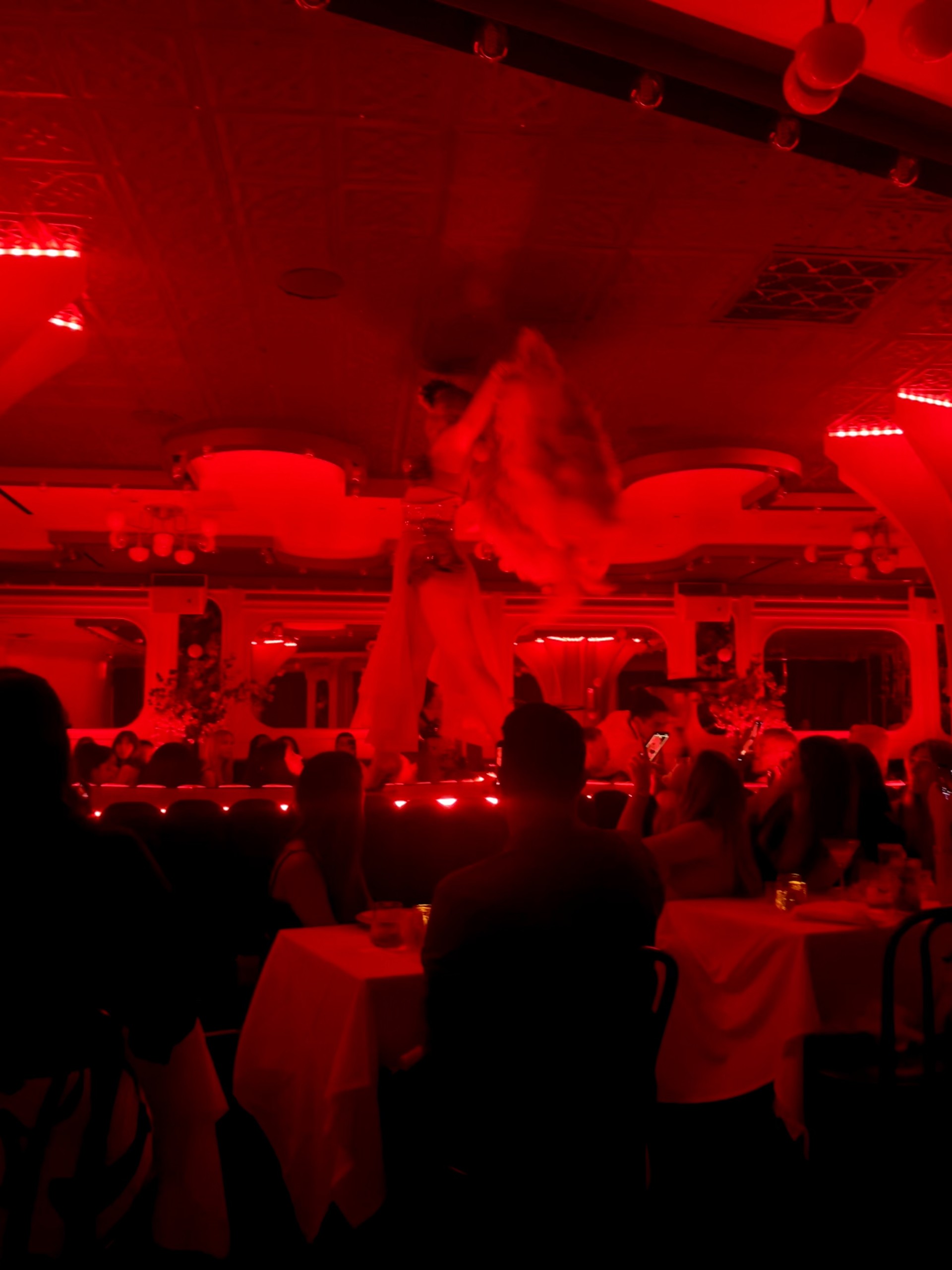 It was crazy. The restaurant gave us free Sex On The Beach shots. We had dinner and shared a bottle of wine, and then the burlesque show started. The dancers were amazing. It was such a fun show! They performed on top of a platform in the middle of the restaurant surrounded by all the seated tables. At the end, all the servers invited everyone up on the platform to dance. And… wouldn’t you know it…, our server took my hand and brought me up on the platform to start dancing. Of course, I had to be the first one!