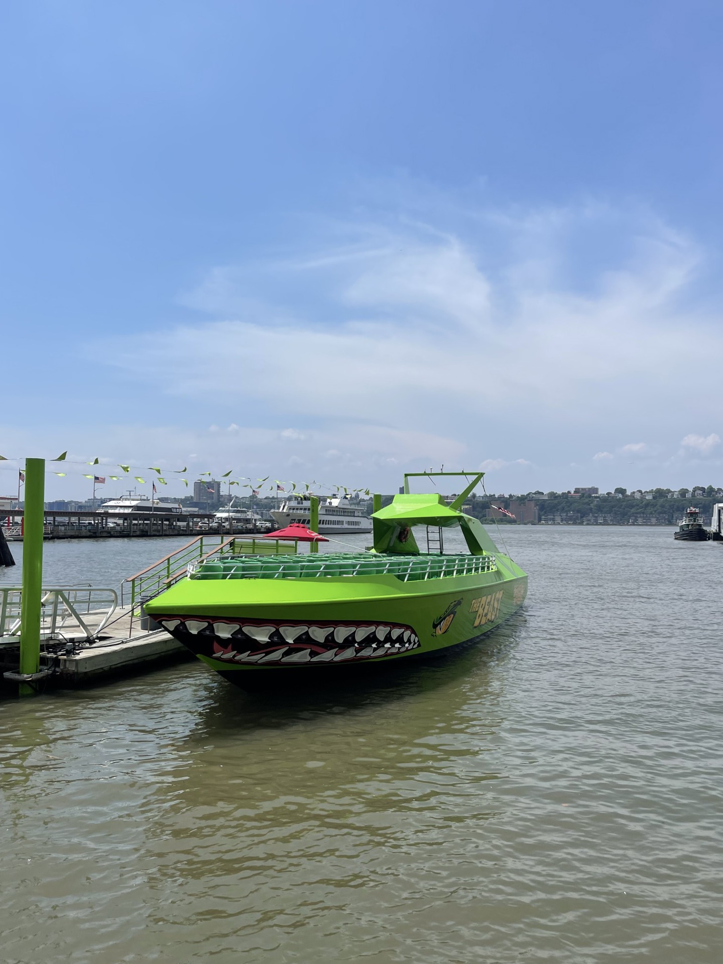 We woke up and had brunch, and then we went on The Beast speed boat tour. This tour was very fun and very exhilarating. The guys running it were hilarious. We saw amazing views of the New York City skyline from the water, and they even took us all the way to the Statue of Liberty, and we circled the island a little bit. We’re able to take pictures. It was lots of fun. The way back was also very fun… but be ready, the ride gets a little bumpy and they’re not afraid to get you wet.