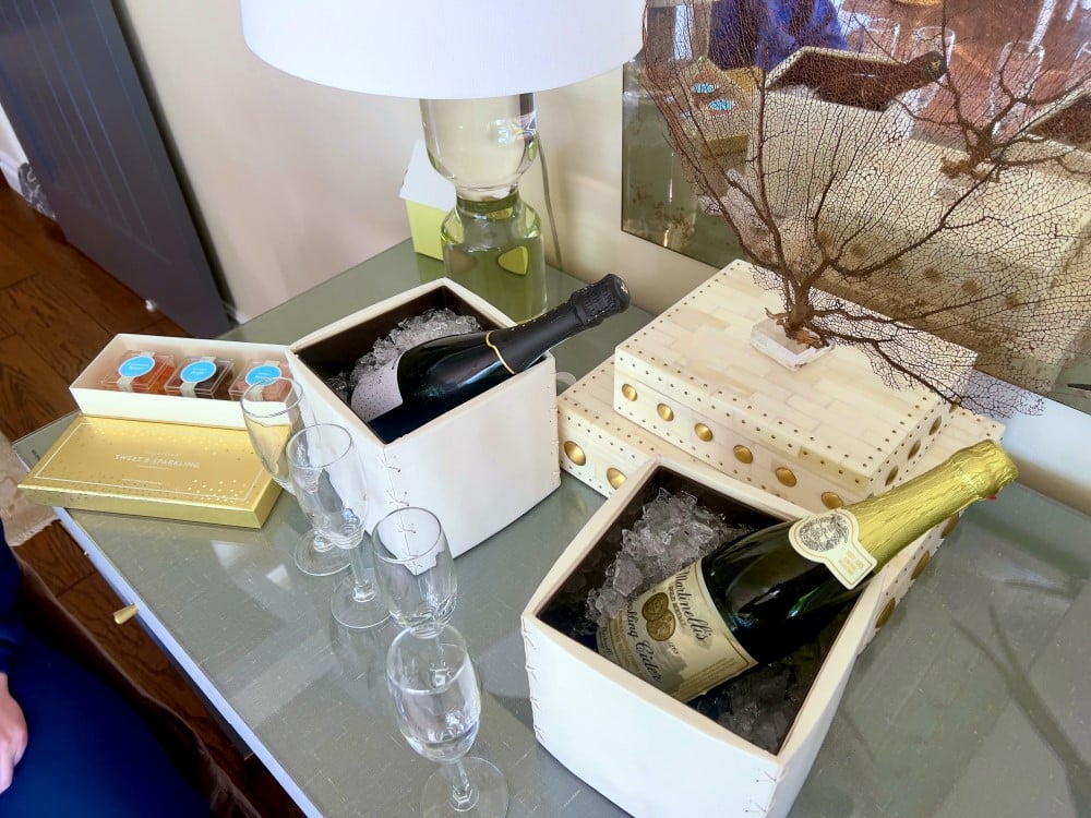 “Would you like a glass?” I heard my husband saying. An elegant complimentary champagne bottle was waiting for us in the suit, a lovely touch that made us remember that the festive season had already begun and we should try to immerse ourselves in it. Even a bottle of non-alcoholic sparkling apple cider for our teen son!