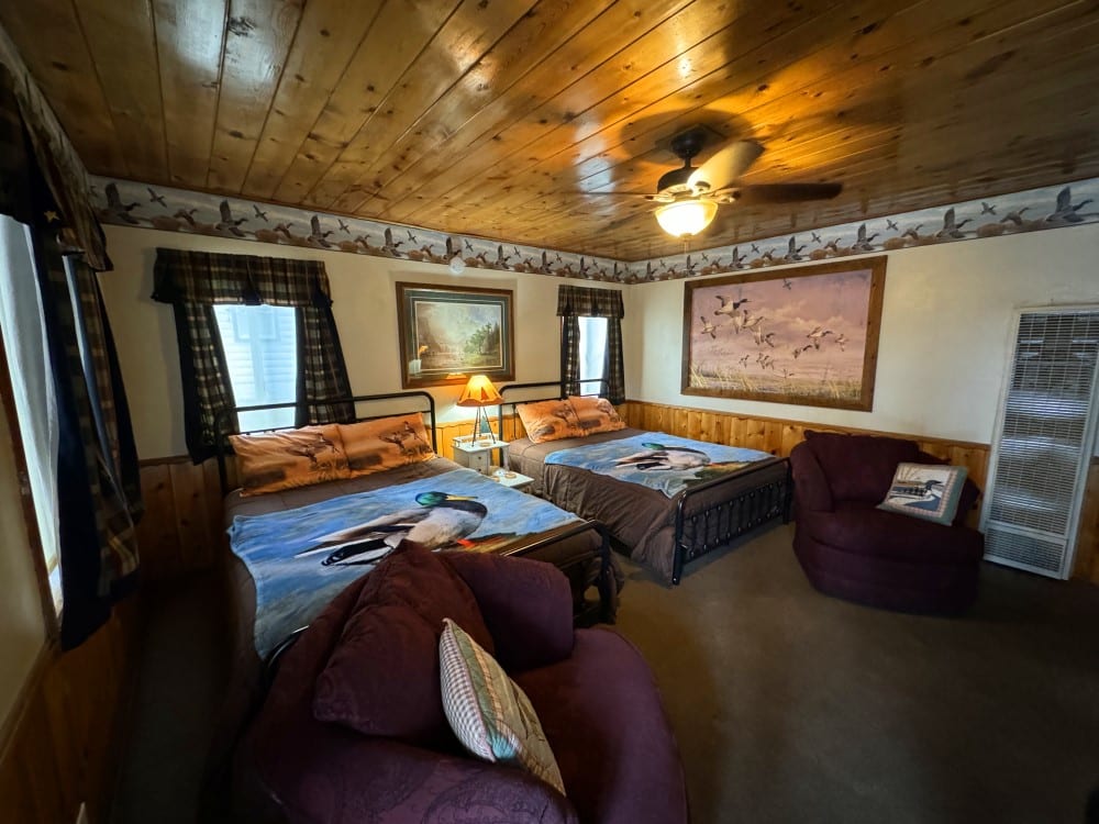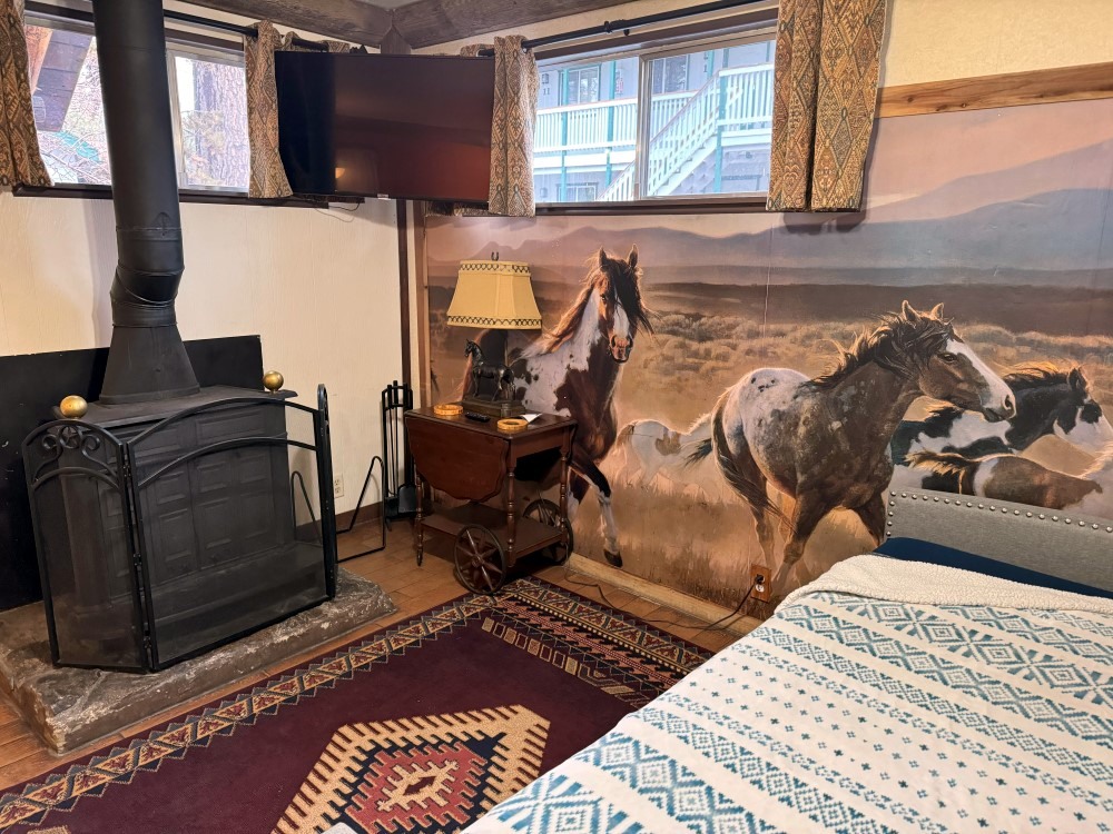 My particular cabin had a small kitchen area, table, couch, tv, and two bedrooms. One bedroom was the master with a queen bed, and the other room had a bunk bed. Perfect for family or friends looking to share a cute cabin together. Did I mention the fireplace? Bundles of wood cost $8 and will be delivered straight to your door.