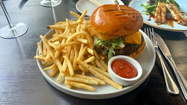 The burger is juicy and the onion rings give it a great crunch. Even the fries are addicting.