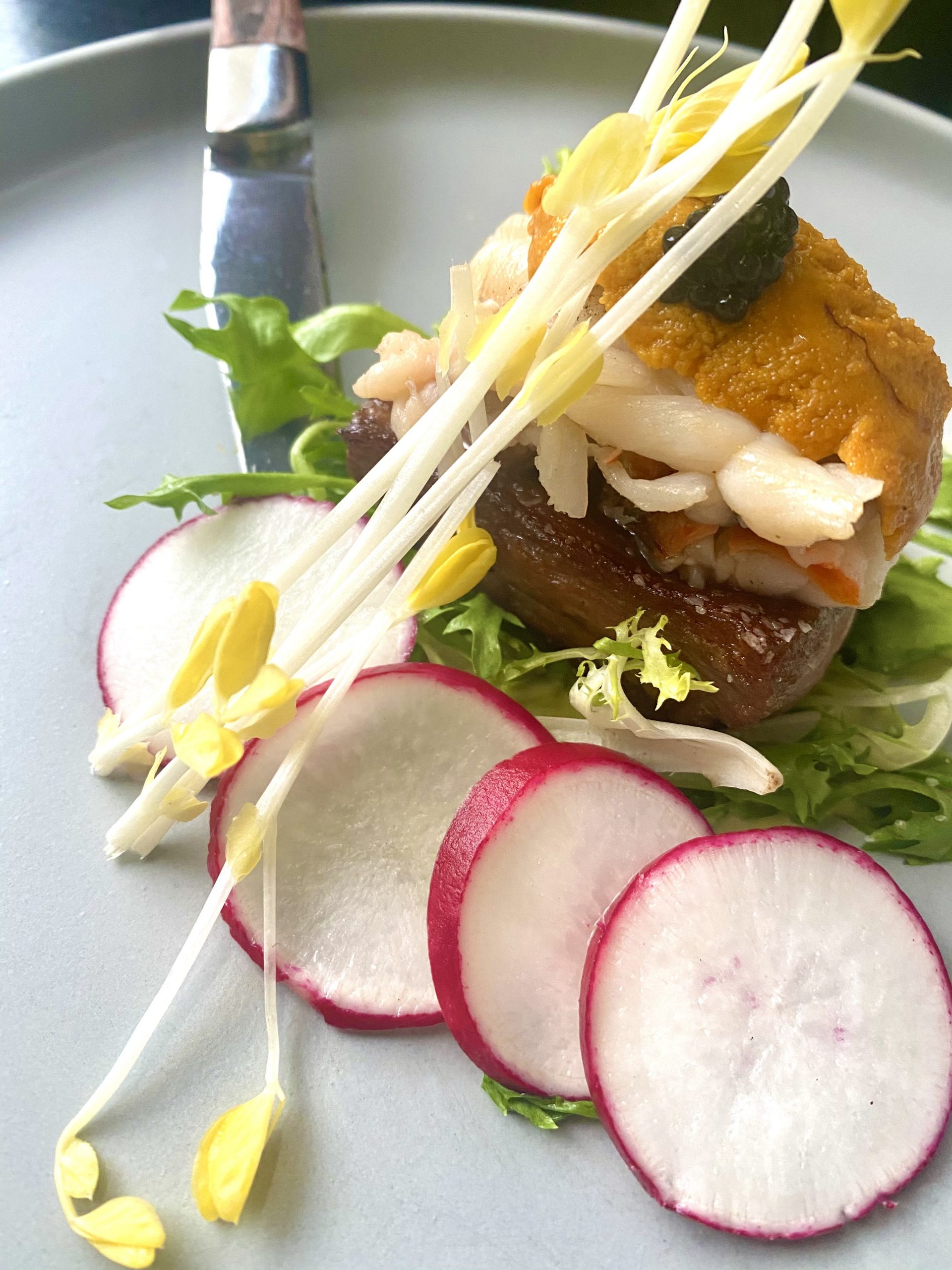 These dishes are beautifully prepared! The Serrano Sashimi is just right, and I loved the heat. The A5 Miyazaki Surf and Turf was almost too pretty to touch. The beef is cooked to perfection, topped with lobster tail, uni, and caviar.